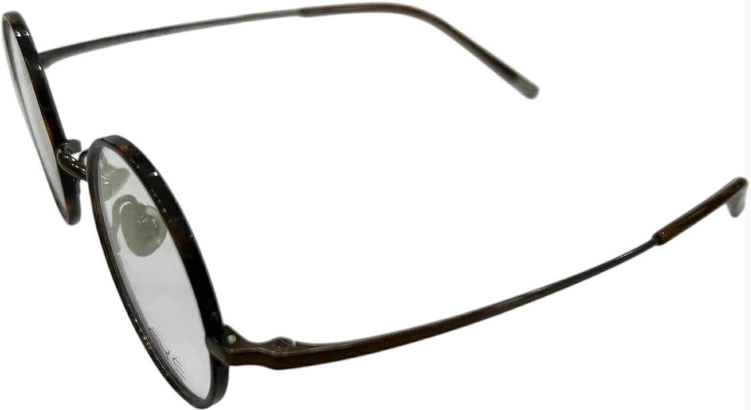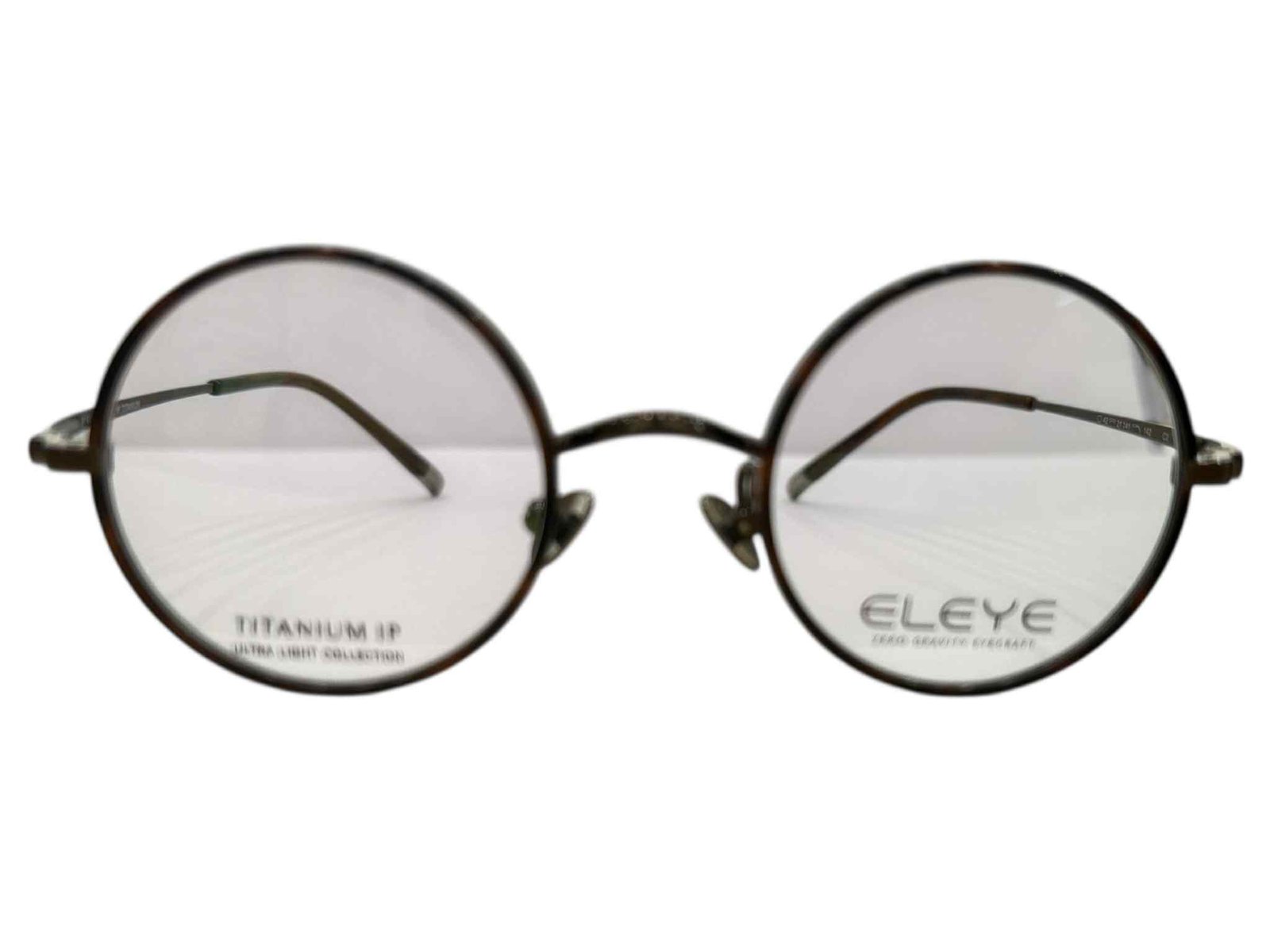 Eleye MW/82 C2 : monture ronde 42/21 en titane ultra-léger, couleur écaille et bronze. Lunettes au style vintage chic, légères, élégantes et confortables.